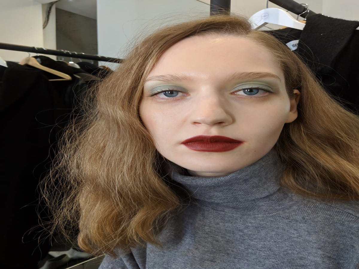On my way to Emilia Wickstead, where Suqqu is taking charge of makeup, I get lost again because it seems designers enjoy booking really obscure venues. This show is in a car park behind The Ritz and the path down to the backstage area is so steep, I have to hold on to another journo for dear life, but we're in hysterics. The beauty look is another red lip, but I'm just as obsessed with this as the last one. If it ain't broke... Thanks to Dyson and Oribe, the hair is another level, with ornate ponytails and sleek buns radiating "Italian and The Godfather " vibes, according to the stylist.